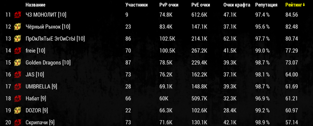 Руководители кланов могут разместить рекламу своего клана в комментариях к записи о сервере.