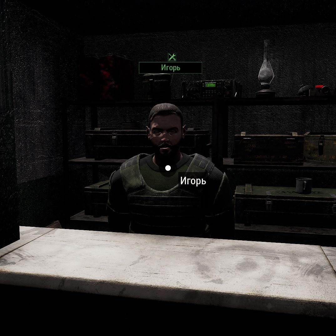 Валера Бонус (Представитель ЧЗ, Торговец, проводник в ТИР) В контейнерах, 3 этаж. | + | Широкий ассортимент. Оружие, одежда патроны до 20 лвл. Фракционная броня (не топ.). | Широкий ассортимент. | + | — | — | — | |