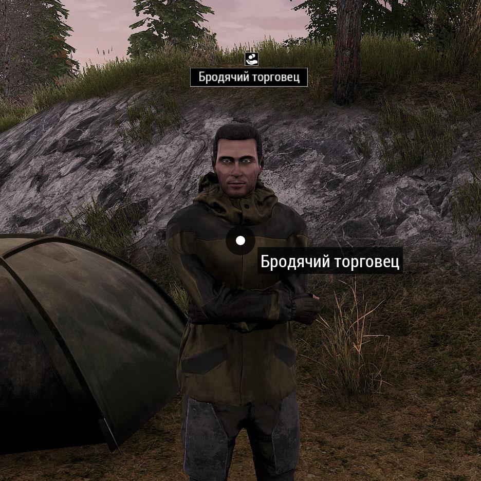 Бродячий торговец (Торговец) Стоит у реки. | + | Контейнеры для артефактов, контейнер для стимуляторов, дозиметр, бутылка с чистой водой. | Артефакты, запчасти мобов (которые обитают в округе. Продавать выгоднее, чем Минаю). | — | — | — | — | |
