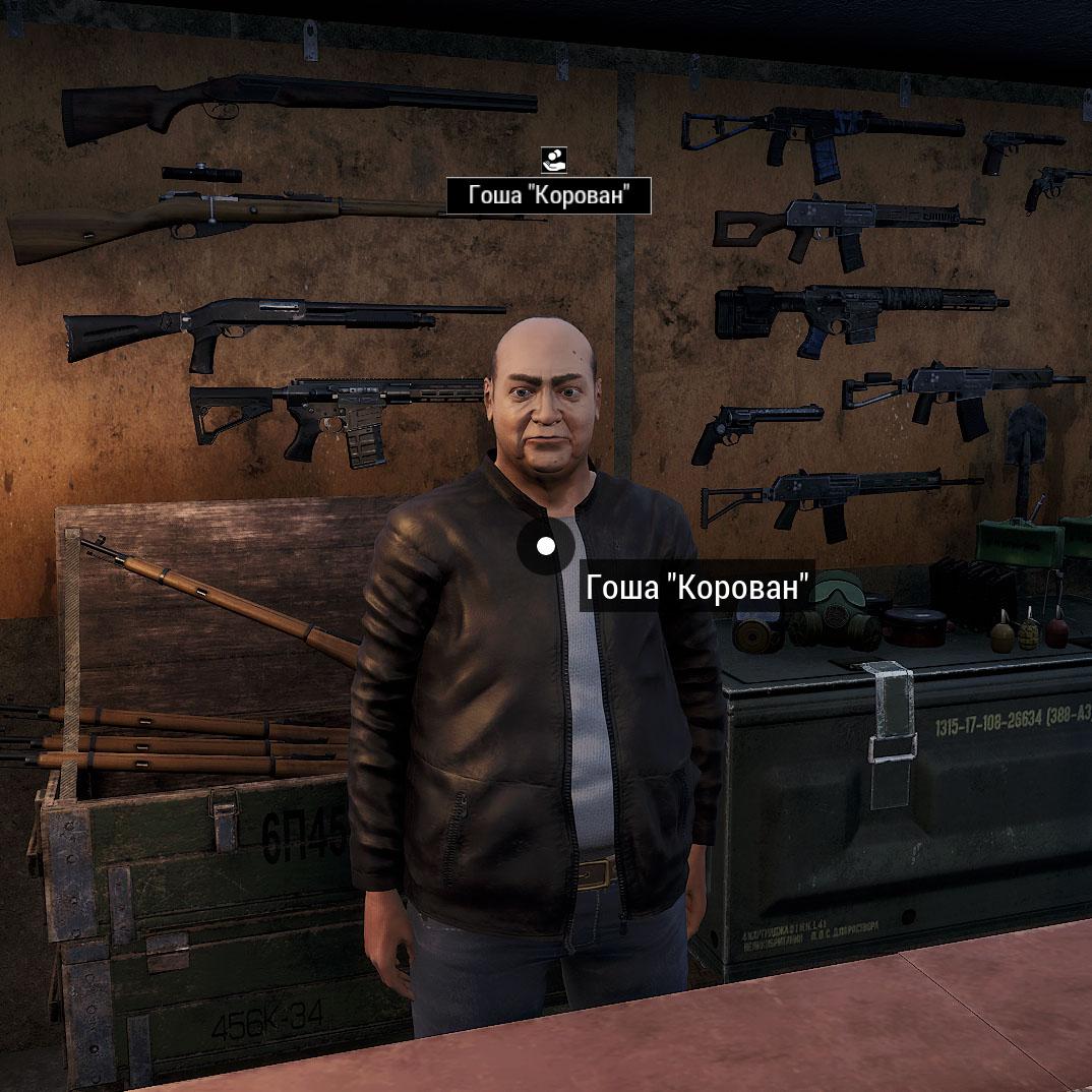 Гоша “Караван” (Торговец, Проводник в ТИР) В здании магазина. | + | Широкий ассортимент. Оружие, одежда патроны до 25 лвл. | Широкий ассортимент. | + | — | — | — | |