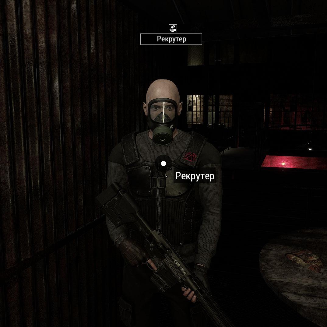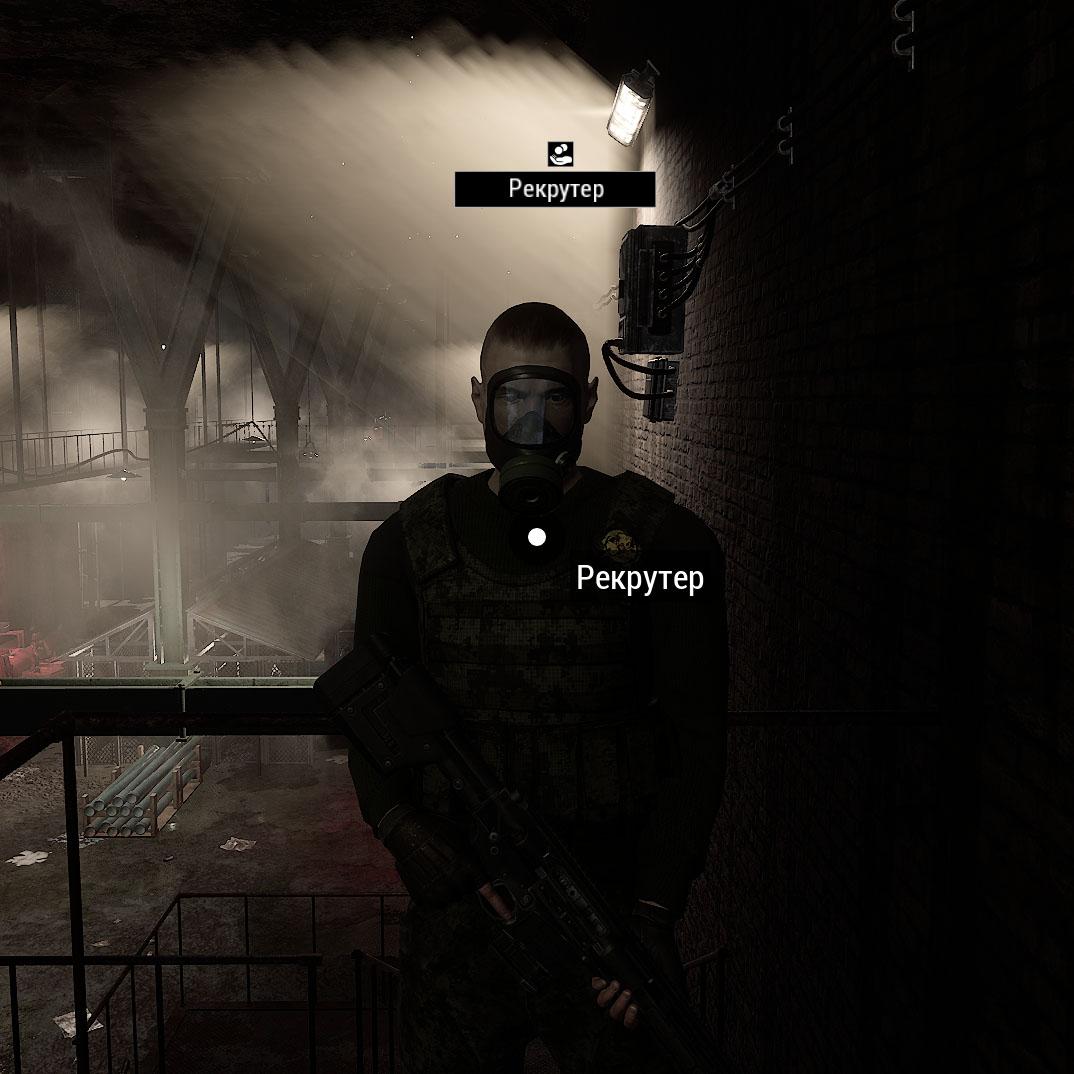 Рекрутер (Проводник на Испытательный Полигон и Предгорье) Для КФ — основной зал, на лестнице в сторону тоннелей). Для ЧЗ — основной зал, 2 этаж, в БАРе. | — | — | — | — | — | — | — | |
