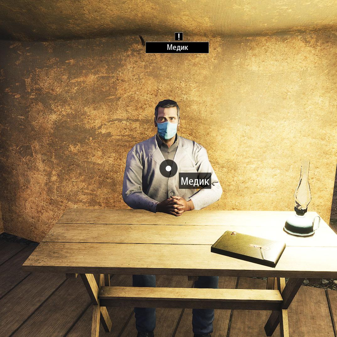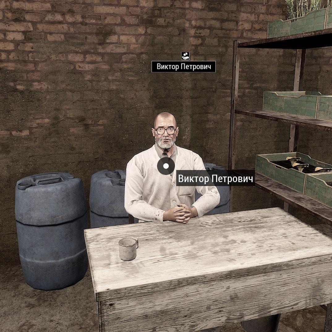 Виктор Петрович (Торговец) 1 этаж основного зала. | + | Медицина, оборудование. | Запчасти мобов. | — | — | — | — | |