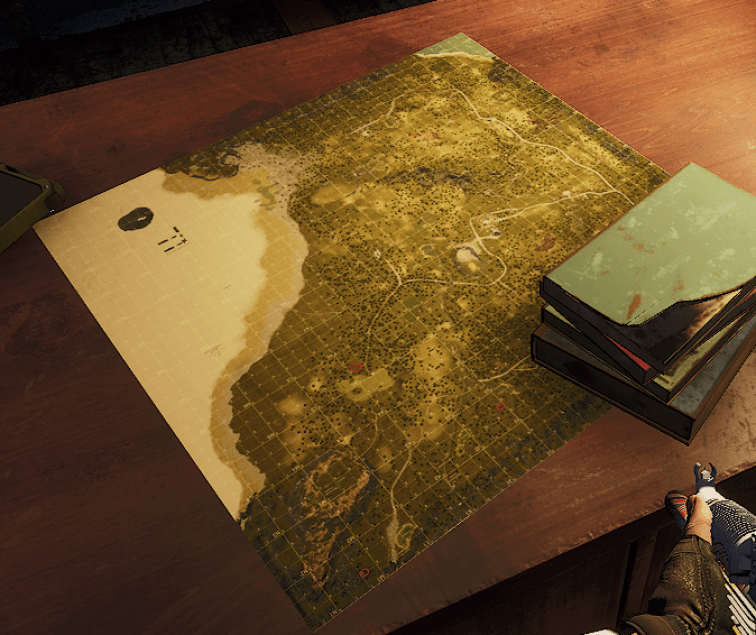 Глядя на стол Михалыча (Солнечное), вы можете увидеть карту. Также аналогичная карта, после обновления лагеря Черного Заката, появилась на столе и у Валеры Бонуса.