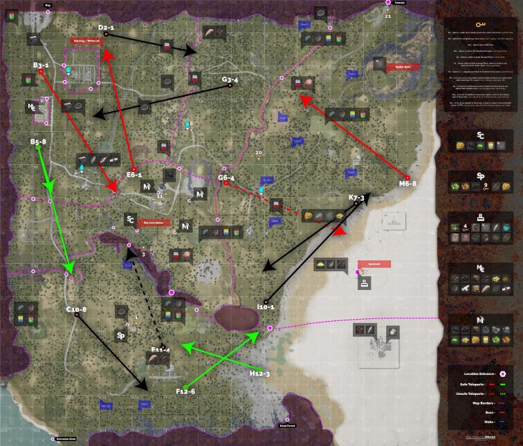 Основные переходы между локациями, радиотерепорты и лут (места фарма).